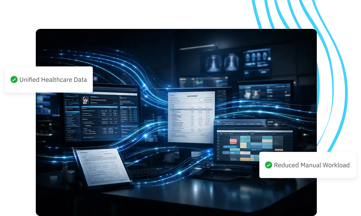 Healthcare data lives throughout EHRs, PDFs, scans, emails, and notes. Each department works differently which can add delays and impact care.