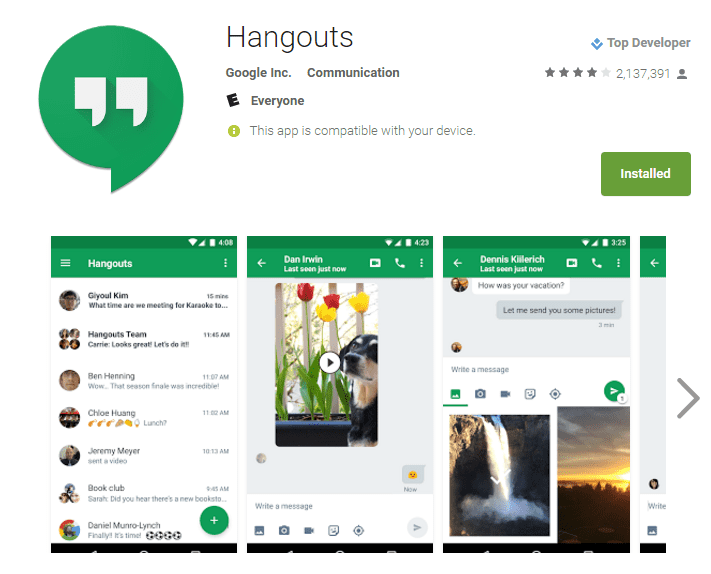 Google Hangouts is great. Before Allo and Duo, it was both of those things and more, and it still is since it’s still currently available and still being updated. It has a 4-star rating on the Google Play store from millions of reviews and billions of downloads.