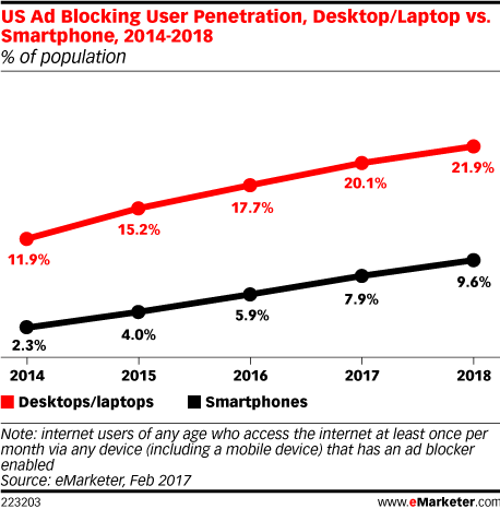 A recent report out of eMarketer revealed that while mobile ad blocking usage is still relatively low compared to its use on desktops and laptops, it’s steadily growing.