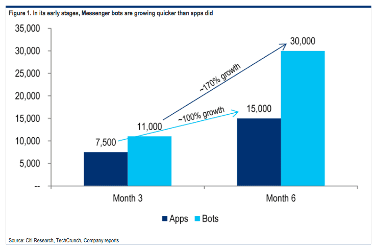 A recent report from Citigroup Inc. shows that the “bot economy” is growing faster than the app economy ever did. The general user barely even understands what bots are, or what they can really do, but they are booming. In 6 months of operating, we’re seeing significantly more bots than we did apps at their 6 month mark.
